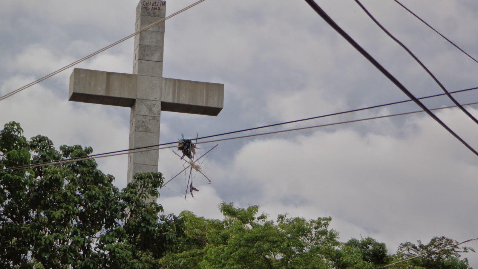 Y particularmente en esta imagen si hacen un acercamiento en la mera punta de la cruz notarán que están inscritas unas letras que dicen. "CHABELIN TE AMO" Desconozco, (aunque puedo suponer) que motivó a esta persona escribir estas letras, considerando que la cruz mide al menos 20 metros de alto y no cuenta con ningún tipo de apoyo para subirse.